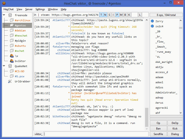 HexChat je pokročilý komunikační IRC klient, který je založen na nástroji XChat. Program podporuje skripty vytvořené v jazycích Lua, Python nebo Perl a možné je i připojení k více sítím současně. Nechybí ani podpora kontroly pravopisu, proxy, SASL nebo DCC.
