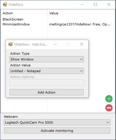 HideNow je zajímavá aplikace, která umožňuje ovládat počítač pomocí pohybů a gest před webovou kamerou. Přiřazení pohybů k jednotlivým akcím si definuje sám uživatel. Na správnou funkci programu má vliv samozřejmě také rozlišení webové kamery a dobré světelné podmínky.