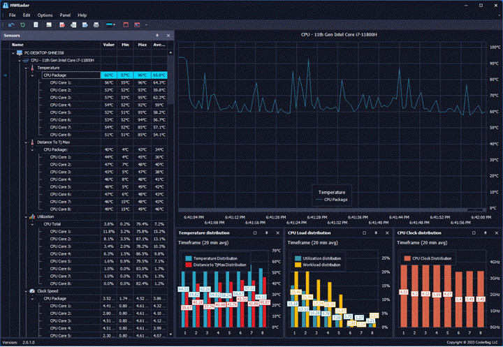 HWRadar je aplikace sloužící pro kontinuální monitorování a přehledné grafické zobrazení výkonu instalovaného hardware. Program sleduje například teplotu a výkon CPU i GPU, aktuální vytížení RAM, napětí, spotřebu elektrické energie a mnoho dalších parametrů. Měřená data lze pak snadno exportovat ve formě přehledných reportů do souborů typu PNG, PDF, CSV, DOC a HTML. Vzhled programu lze navíc snadno změnit pomocí více než 40 témat.