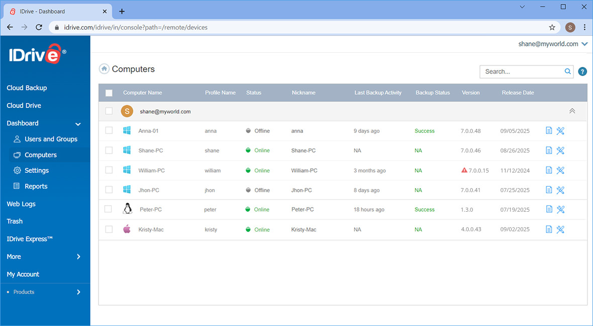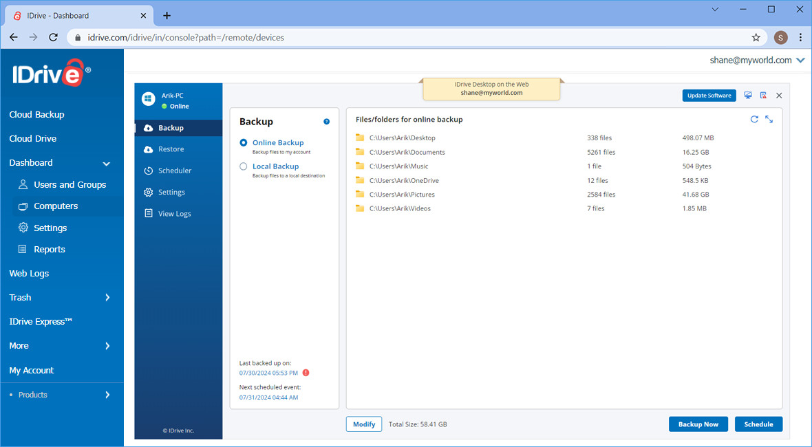 IDrive Thin Client je pokročilý nástroj s minimalistickým rozhraním, který je určený pro snadné zálohování firemních i osobních dat a pro přehlednou správu záloh. Veškerá správa záloh je prováděna přes webové rozhraní.