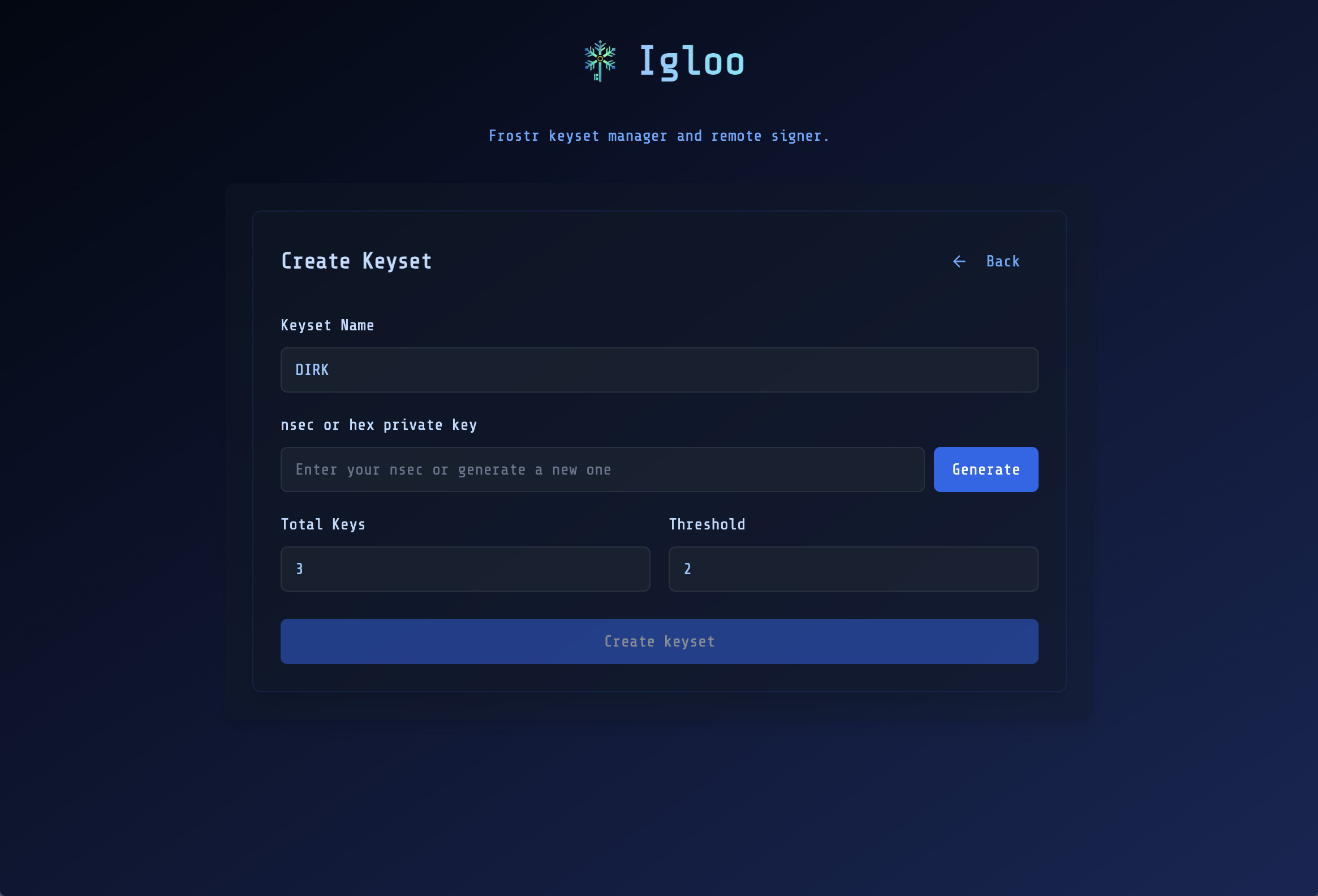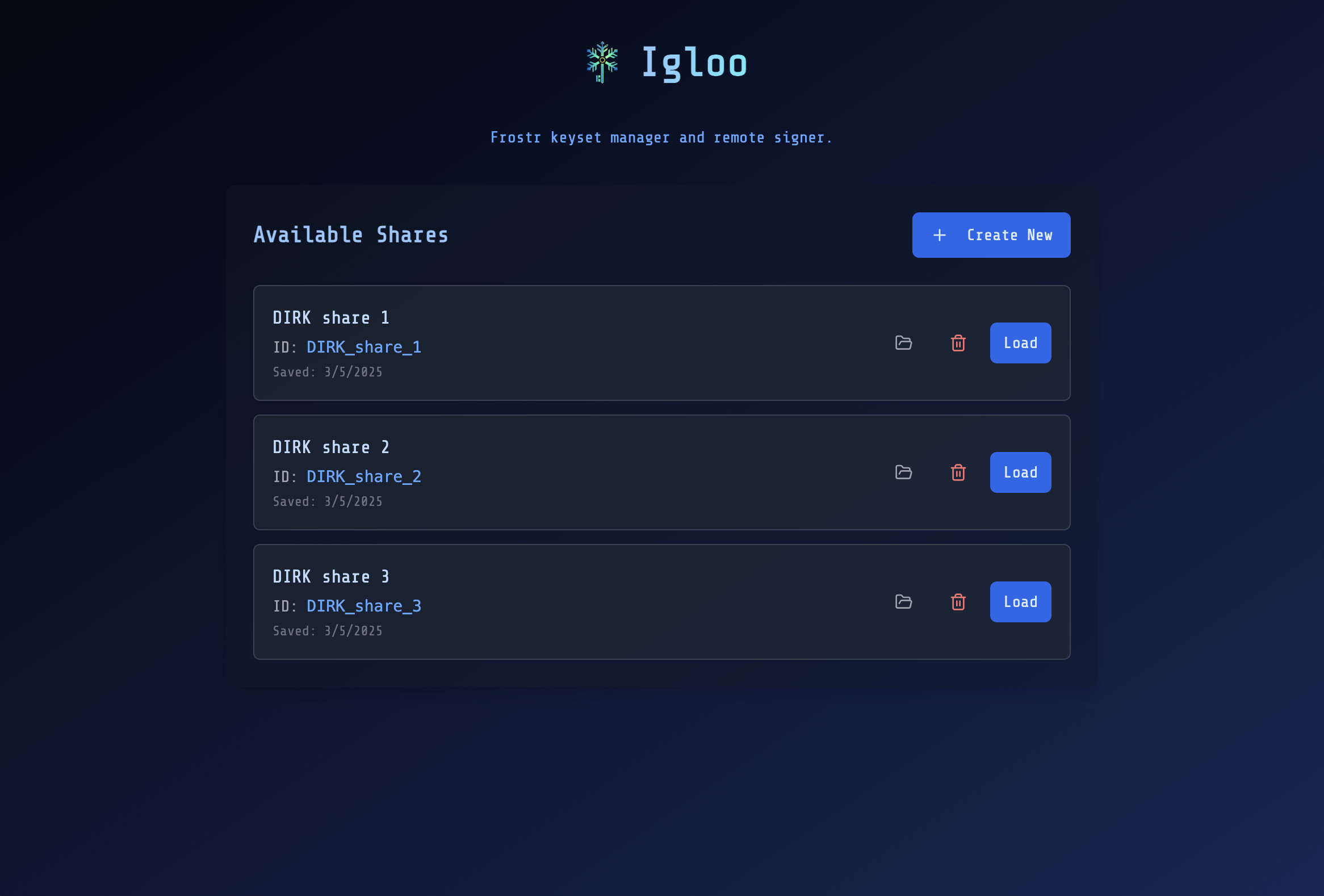 Igloo je aplikace určená pro správu klíčů a pro vzdálené podepisování pomocí protokolu FROST, který byl navržen pro ekosystém Nostr.