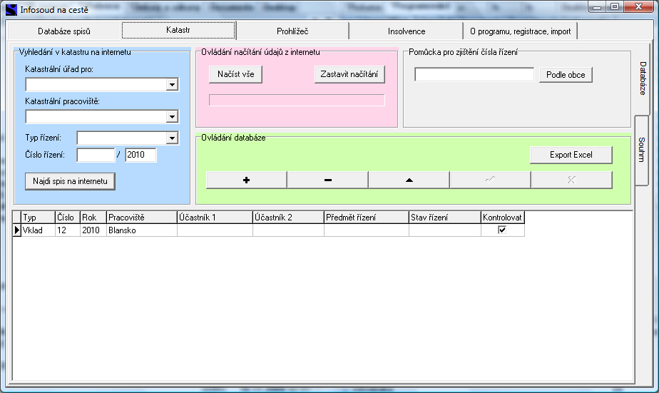 Infosoud a Katastr je právní aplikací, která komunikuje se serverem justice.cz i se serverem NSsoud.cz.