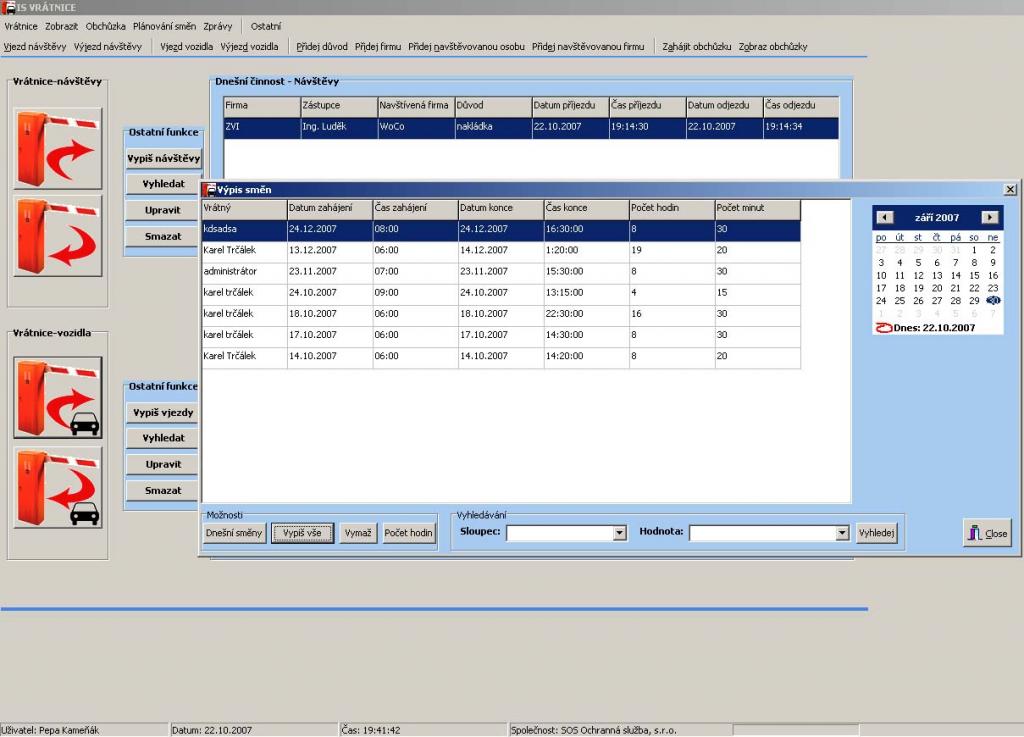 Nový a standardy dnešní doby podporující a splňující program pro úplnou obsluhu hlídaných vrátnic při zachování maximální jednoduchosti a bezpečnosti práce.