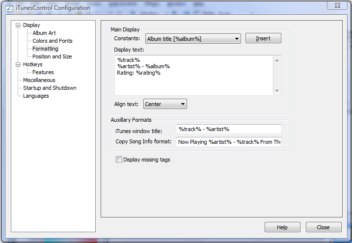 iTunesControl je nástroj pro pohodlnější ovládání víceúčelového multimediálního přehrávače iTunes. Program umožňuje například zobrazit název přehrávané skladby na obrazovce, ovládání iTunes pomocí klávesových zkratek a mnoho dalšího.