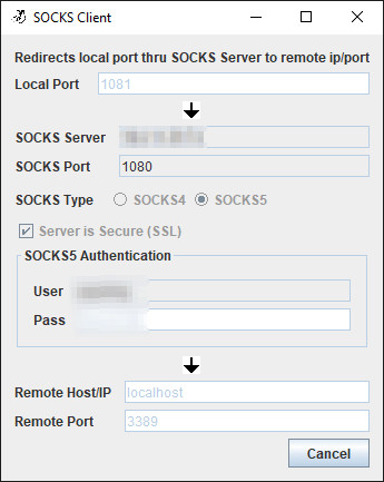 jfsocks je aplikace sloužící jako SOCKS4/4a/5 server s podporou SSL zabezpečení. Program v sobě zahrnuje jednoduchého klienta, který přesměrovává lokální port přes SOCKS server na vzdáleného hostitele respektive IP adresu. SSL klíče je pak možné podepsat a verifikovat serverovými klíči.