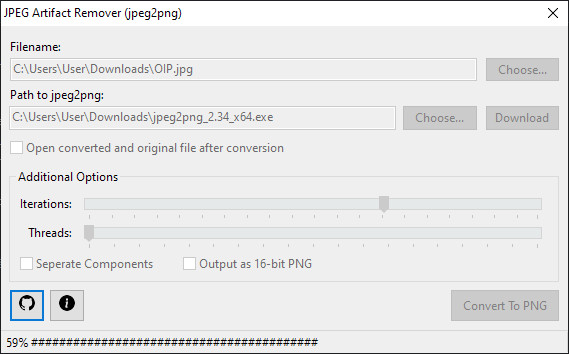 JPEG Artifact Remover je jednoduchý pomocník sloužící pro odstranění kompresních artefaktů z fotografií v JPEG formátu a pro jejich převod do čistého PNG formátu. Program dokáže odstranit blokové nebo rozmazané artefakty, které vznikají při JPEG kompresi a výsledkem je pak čistější a ostřejší snímek, který je vhodnější pro další úpravy nebo uschování.