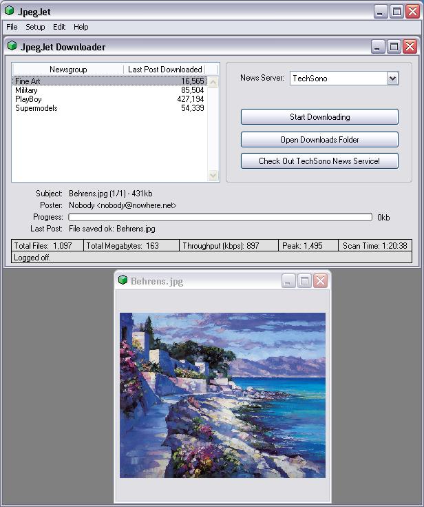 JpegJett je užitečný nástroj pro vyhledávání a hromadné stahování obrázků a fotografií z Internetu. Uživatel pouze zadá klíčové slovo pro vyhledávání. Součástí programu je také jednoduchý prohlížeč obrázků a funkce pro eliminaci duplicitních obrázků.