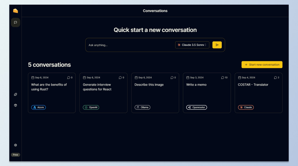 Kaas je desktopovým LLM klient pro komunikaci s umělou inteligencí, přičemž jsou podporováni poskytovatelé OpenAI (ChatGPT), Anthropic Claude, Microsoft Azure, Ollama a další. Uživatel může navíc nastavit proxy pro obejití různých síťových omezení.