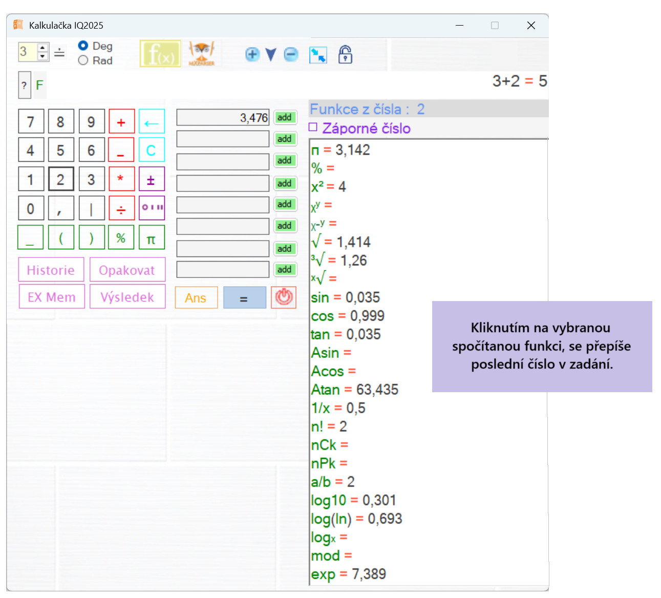 Kalkulačka IQ2025 je přehledná a programovatelná kalkulačka, kterou lze využít pro běžné i vědecké výpočty