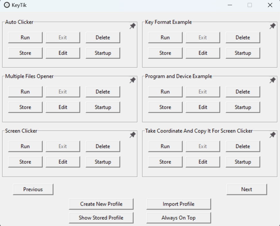 KeyTik je nenáročný nástroj sloužící pro snadné přemapování klávesnice s možností vytvoření a snadného použití uživatelských profilů. Program využívá skriptovací jazyk AutoHotkey pro přemapování kláves, což umožňuje širokou škálu automatizačních úkonů, jako je například automatické klikání myší apod. Program není potřeba instalovat.