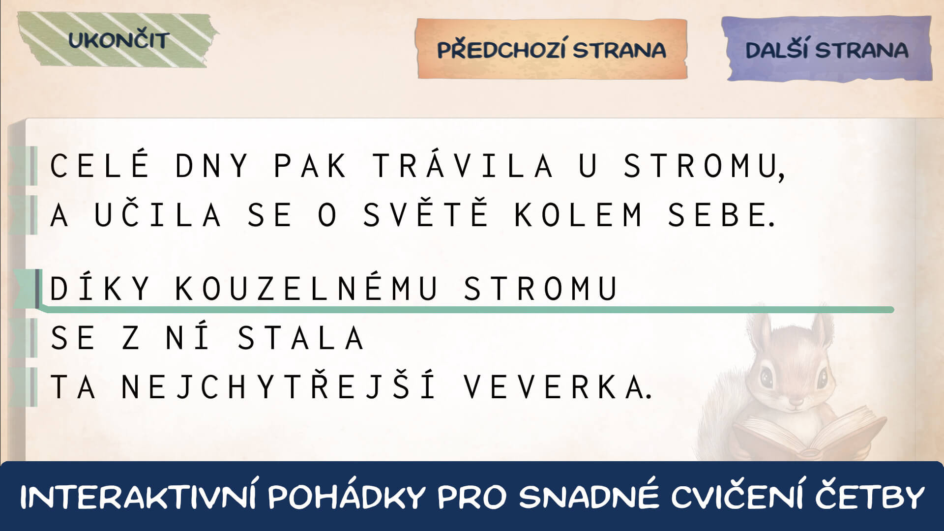 Interaktivní pohádky – každá pohádka děti provází hravou cestou, kde si osvojí nové dovednosti a procvičí čtení zábavnou formou. Děti se tak učí přirozeně, aniž by si uvědomovaly, že se právě vzdělávají!