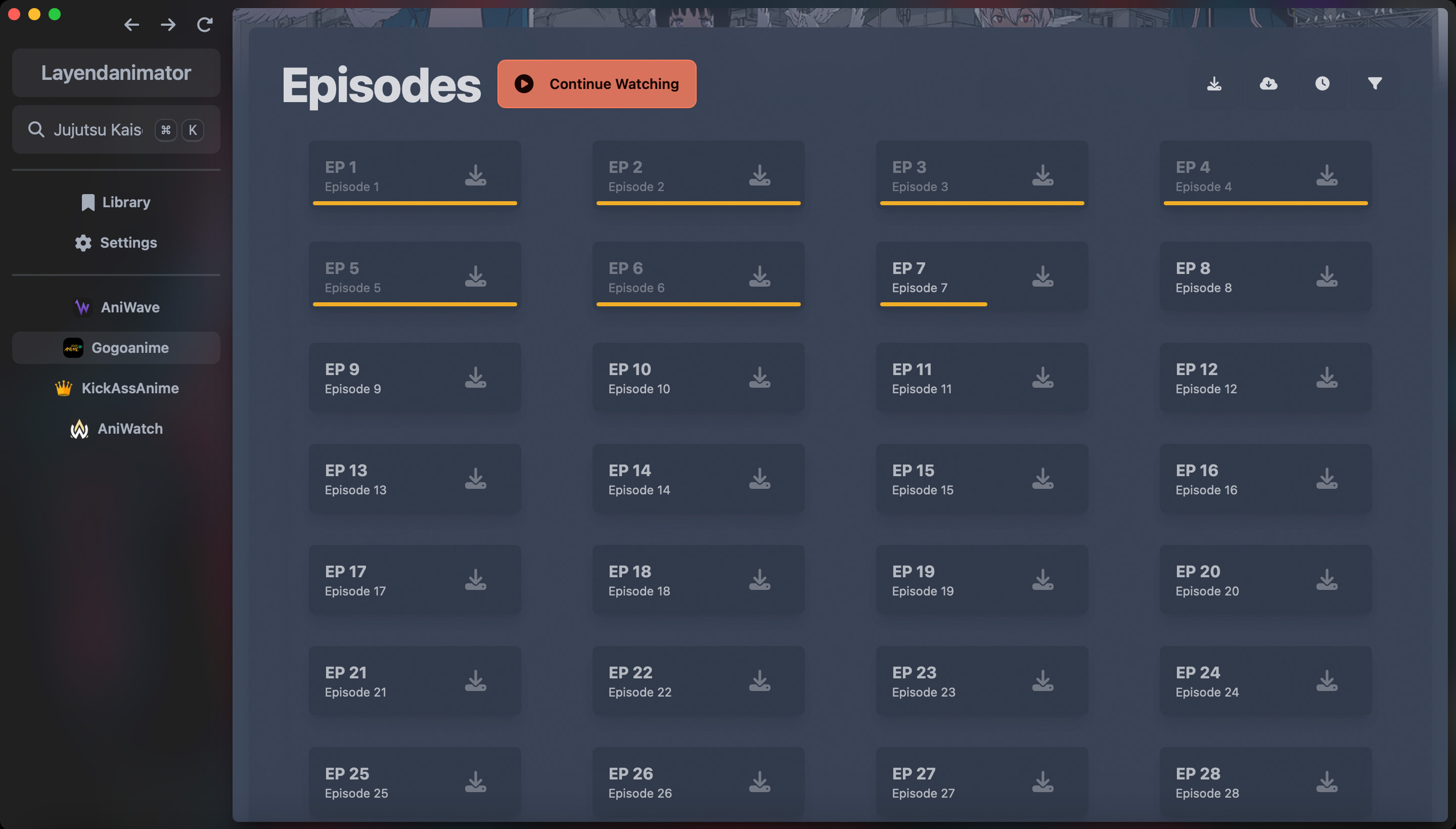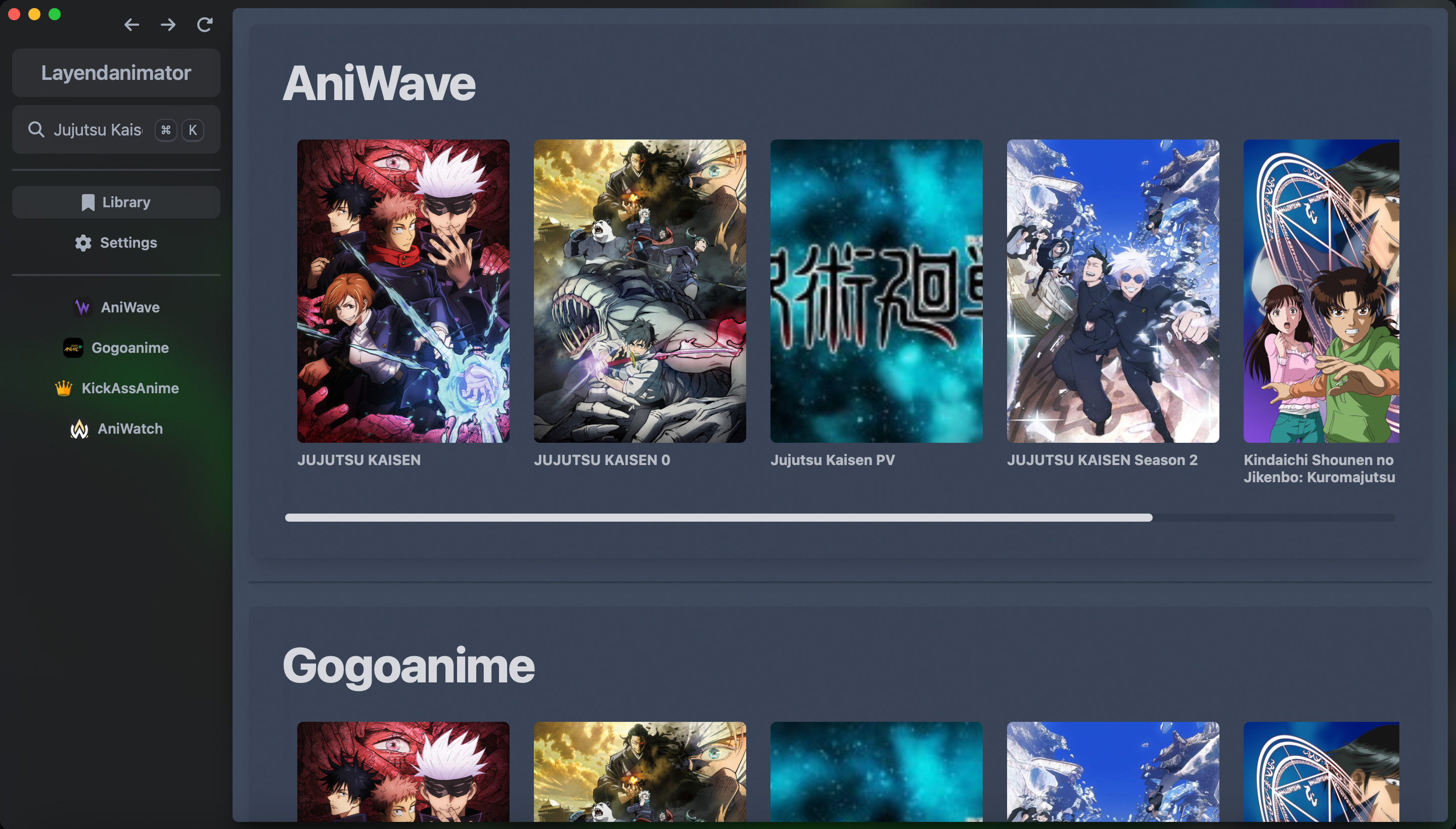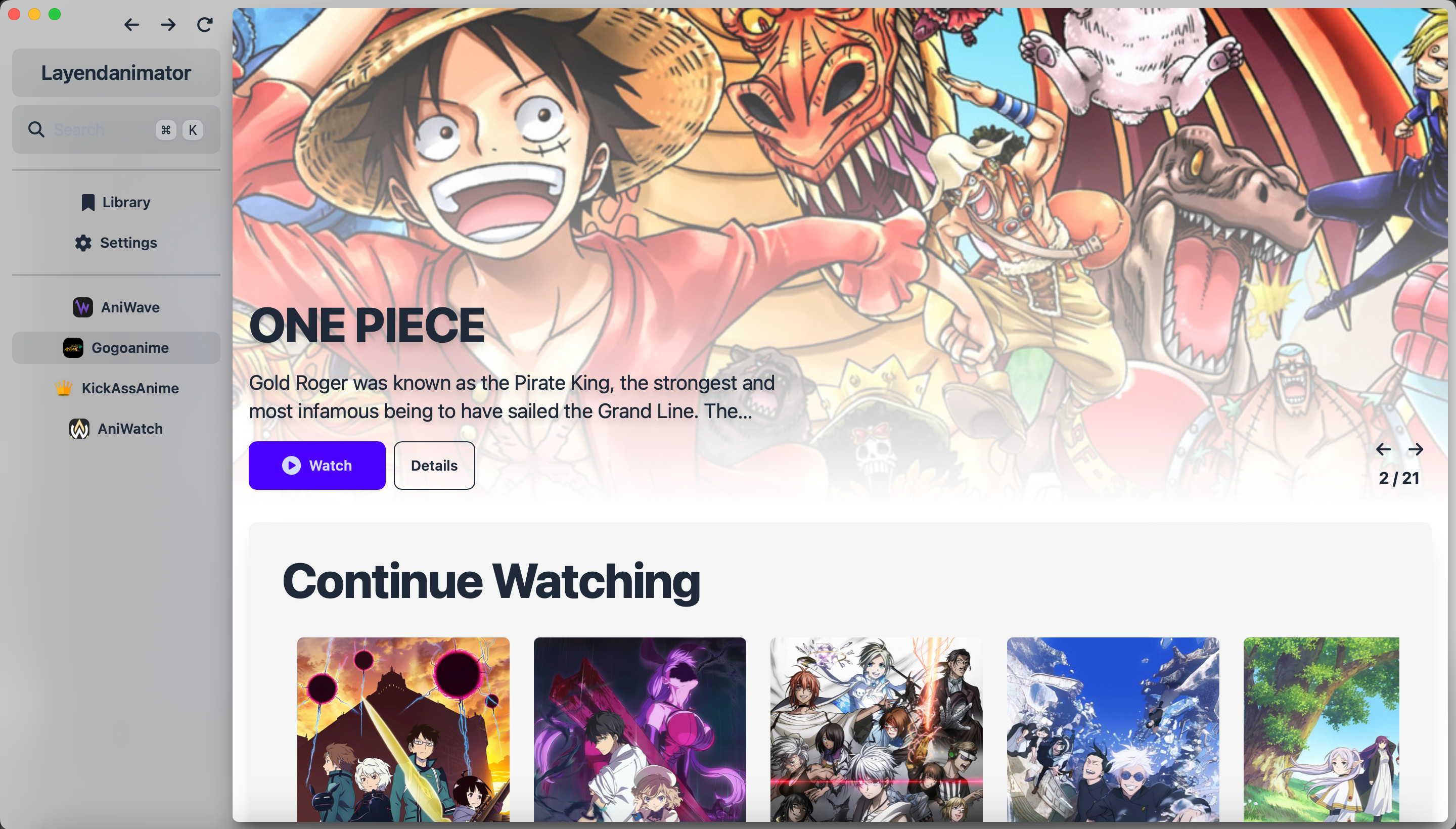 Layendanimator je nástroj sloužící pro stahování a sledování anime z webových stránek. Program může uživatele automaticky upozornit i na nové epizody anime. Součástí programu je video přehrávač a existuje i možnost přehrávání v režimu obraz v obraze (PiP). Vybrané epizody lze snadno stáhnout a později přehrát v offline režimu.