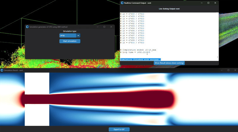LBM Python Viewer je nástroj určený pro generování a pěknou vizualizaci CFD (Computational Fluid Dynamics) simulací s využitím mřížkové Boltzmannovy metody (Lattice Boltzmann method). Simulace vygenerované na základě nastavených parametrů jsou prezentovány ve formě GIF animací. Program lze využít například při výuce dynamiky tekutin.