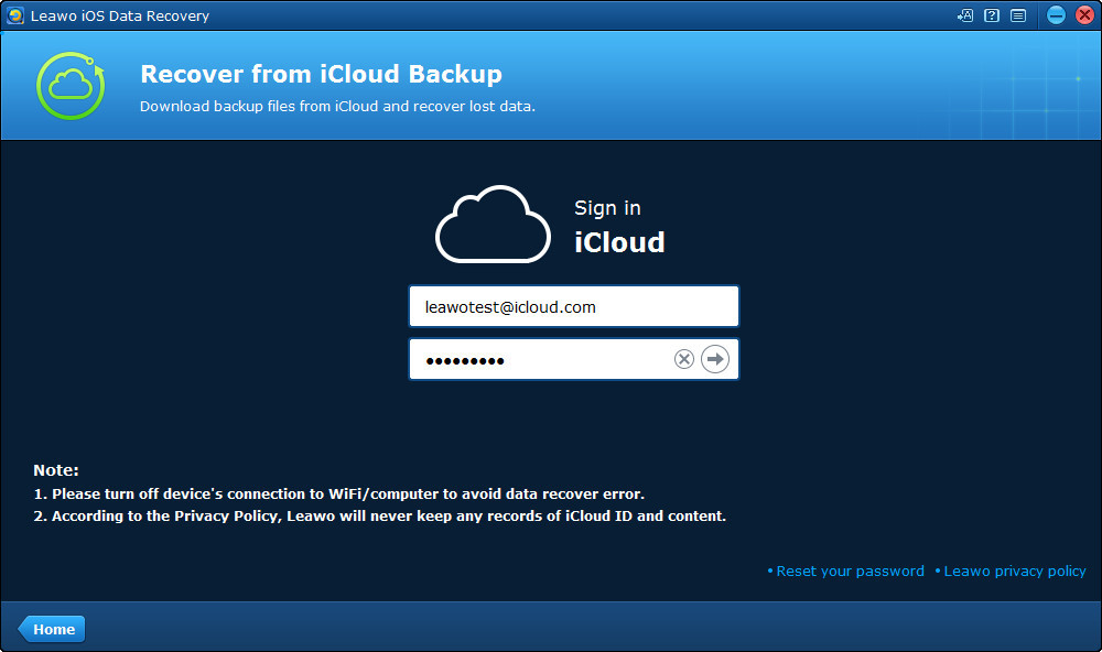 Leawo iOS Data Recovery je aplikace sloužící pro pohodlnou obnovu dat z přenosných zařízení s operačním systémem iOS (iPhone, iPad, and iPod). Data lze obnovit z cloudového úložiště iCloud i serveru iTunes. Program umožňuje obnovit více než 14 různých typů dat včetně fotografií, SMS zpráv, kontaktů, kalendáře, poznámek, oblíbených záložek Safari prohlížeče a dalších.