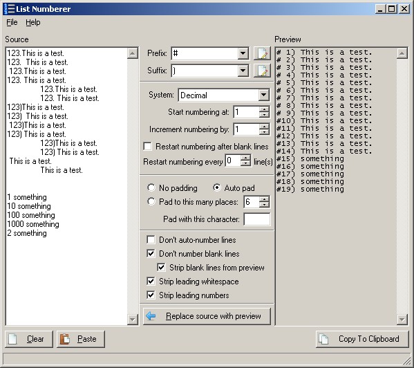 List Numberer je jednoduchá pomůcka pro očíslování řádků v textu dle nastavených parametrů a kritérií. Text se do programu vkládá pomocí clipboardu a stejným způsobem se exportuje očíslovaný text. Program není třeba instalovat.