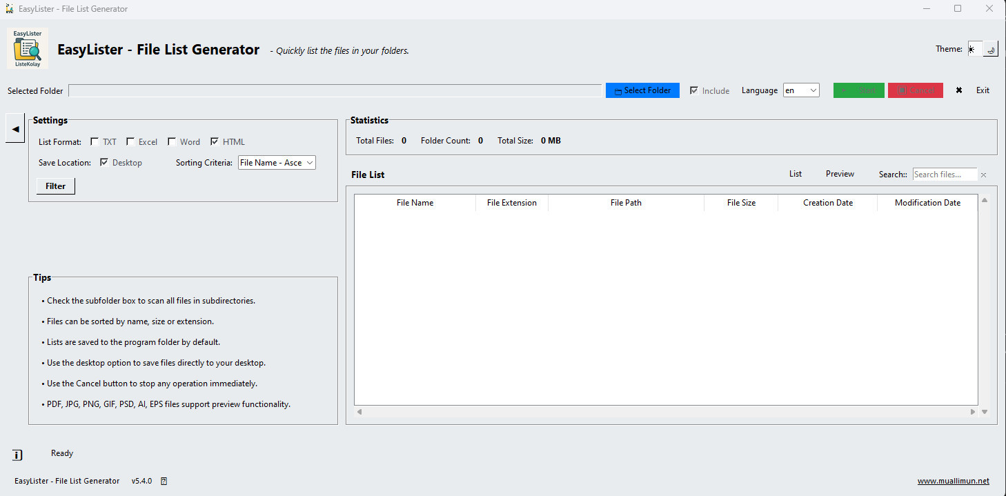 ListeKolay - EasyLister je aplikace sloužící pro rychlé prohledávání respektive skenování zvolených složek (adresářů), včetně případných podsložek a zobrazení jejich obsahu. Samozřejmostí je možnost filtrování podle druhu souborů (obrázky, dokumenty, multimédia, komprimované archivy atd.).