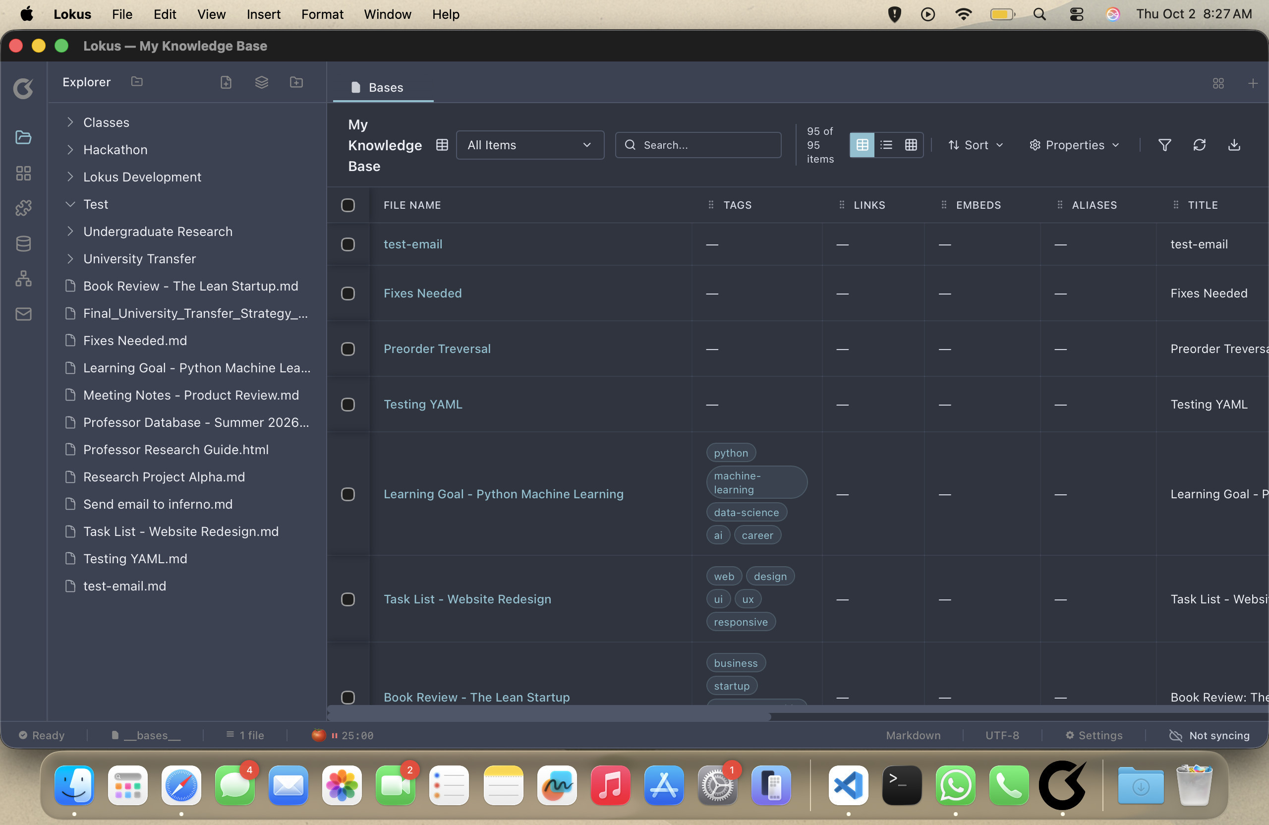 Lokus je aplikace sloužící pro přehlednou správu poznámek pomocí Markdown syntaxe a s možností využití zajímavých grafů a také AI Asistencí. Veškerá data jsou navíc ukládána lokálně. Užitečnou funkcí je fulltextové vyhledávání a tvorba strukturovaných databázových pohledů. Nástroj je optimalizován pro práci s velkými znalostními archivy