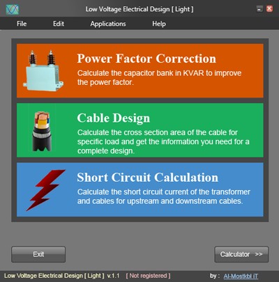 Low Voltage Electrical Design je užitečný pomocník pro návrh a pokročilý výpočet nízkonapěťových rozvodů a kabeláží. Uživatel má k dispozici celkem trojici výpočtů: