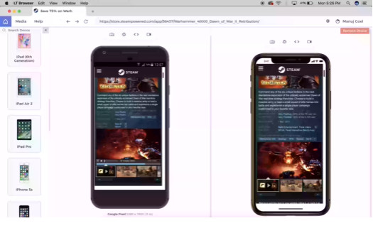 LT Browser je aplikace, která slouží pro testování responzivního obsahu na různých zařízeních. Testování je realizováno prostřednictvím simulace na více než 25 typech mobilních zařízení s různým rozlišením displeje. V případě potřeby lze vytvořit konfiguraci vlastního zařízení s vlastnostmi mobilního telefonu, tabletu nebo desktopu. Program podporuje integraci s webovými službami Jira, Trello, Asana nebo GitHub pro bug tracking.