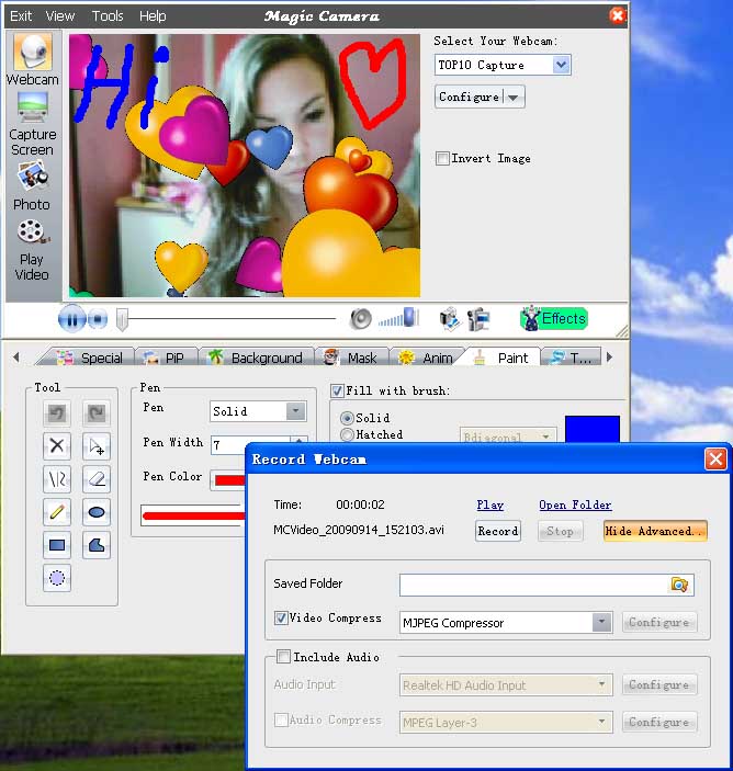 Magic Camera je software pro aplikaci zábavných efektů či rámečků při videohovorech pomocí oblíbených komunikačních programů Skype, ICQ, AIM, MSN Messenger, Yahoo Messenger, Camfrog Video Chat, PalTalk, ANY webcam, BlogTv, Justin.tv, Stickam a dalších.