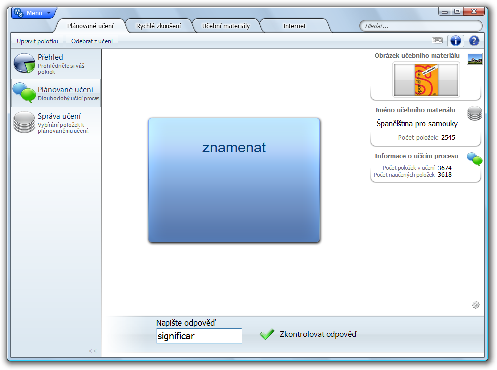 Program vám každý den připraví sadu slovíček nebo jiných informací, které se chcete naučit a zapamatovat. Podle vašich odpovědí potom naplánuje jejich další opakování. Nad tím co se učíte máte naprostou kontrolu.