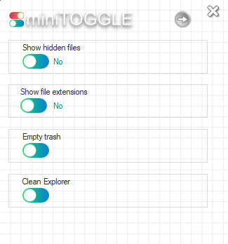 miniToggle je jednoduchá pomůcka sloužící pro snadnou a velmi rychlou změnu viditelnosti skrytých souborů v Průzkumníku ve Windows. Jediným kliknutím na ikonu programu v oznamovací oblasti lze okamžitě zapnout nebo vypnout viditelnost skrytých souborů, zapnout nebo vypnout viditelnost přípon souborů nebo automaticky vysypat koš. Program se nemusí instalovat.