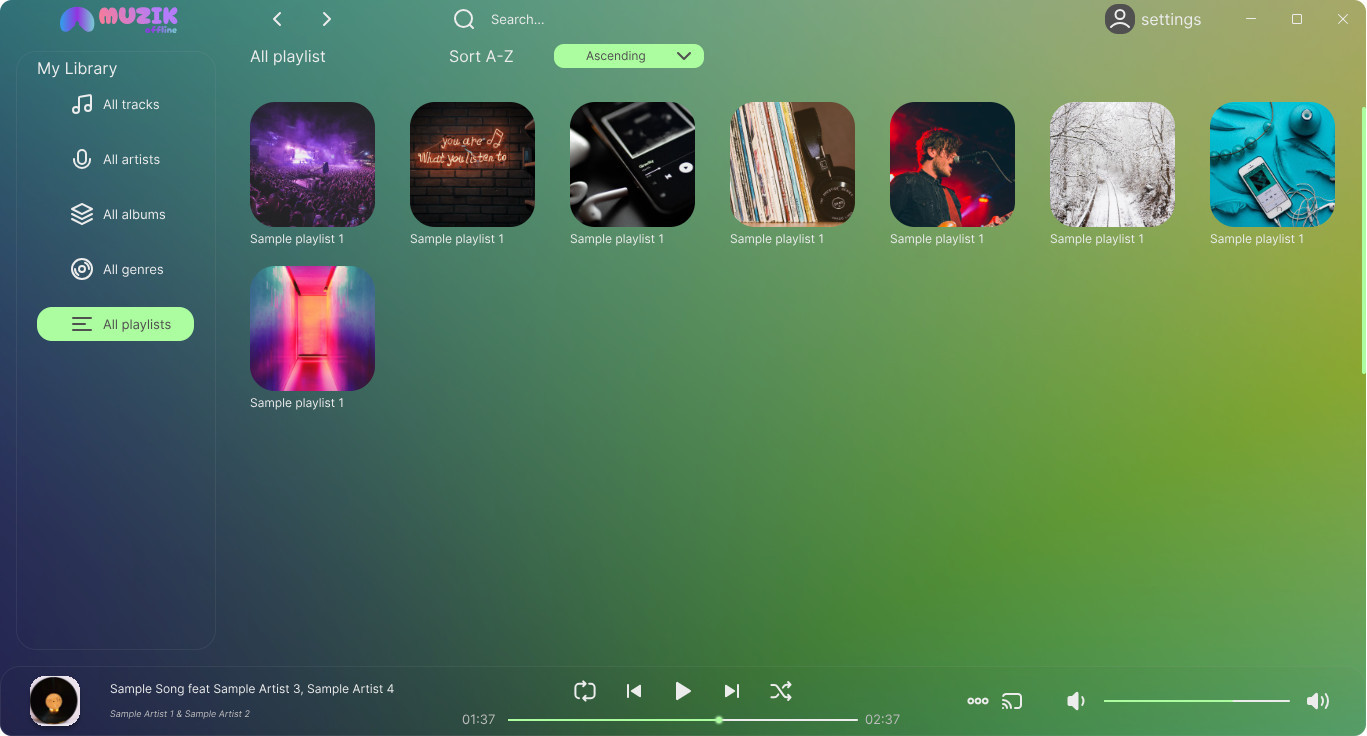 muzik-offline je přehledný a systémově nenáročný audio přehrávač určený pro offline přehrávání lokálně uložených hudebních souborů typu MP3, WAV, OGG a FLAC. Podporována je tvorba vlastních plylistů, úprava vzhledu přehrávače a ovládání pomocí klávesových zkratek.