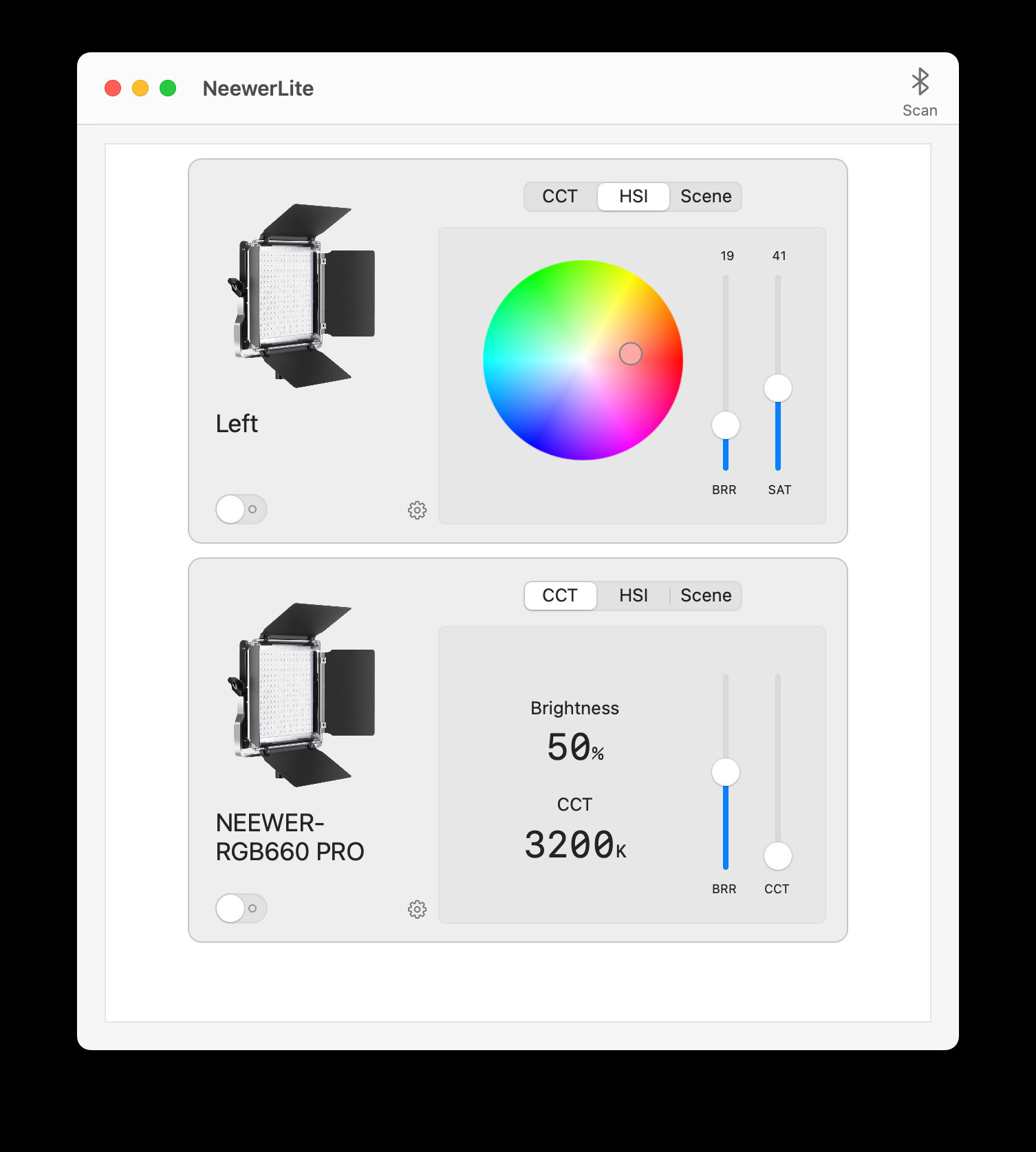NeewerLite for Mac je neoficiální nástroj pro pohodlné ovládání LED světel od firmy Neewer. Ovládání světel lze provádět i vzdáleně přes Bluetooth, podobně jako to umí oficiální mobilní aplikace pro Android a iOS.