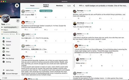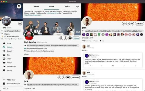 Nostrmo je přehledný desktopový klient pro decentralizovanou komunikační síť Nostr. Tento klient poskytuje různé funkce a vlastnosti, které zahrnují podporu základního protokolu Nostr (NIP-01). Klienta není potřeba instalovat.