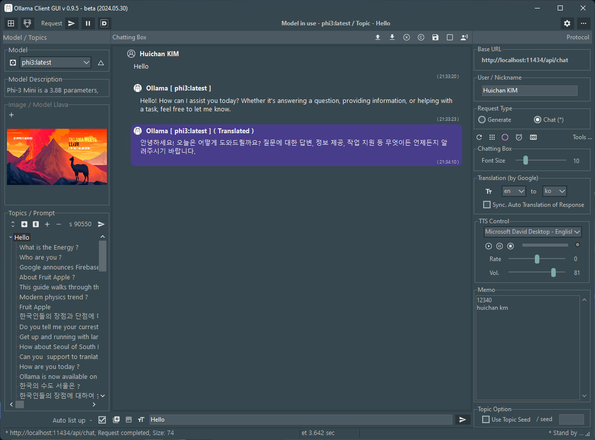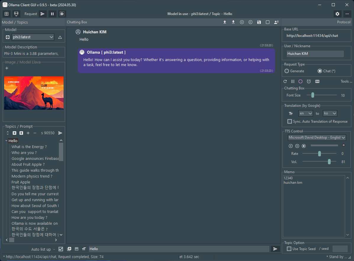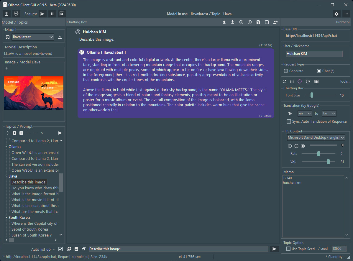 Ollama Delphi GUI je nástroj poskytující grafické rozhraní (GUI) pro interakci s lokálními jazykovými modely Ollama. Program umožňuje práci s modely jako například Gemma3 nebo Llava a to včetně analýzy obrázků. Podporována je také konverzace s uchováváním historie, což usnadňuje sledování předchozích interakcí. Existuje rovněž možnost překladů textu nebo čtení textu pomocí funkce TTS (text to speech).