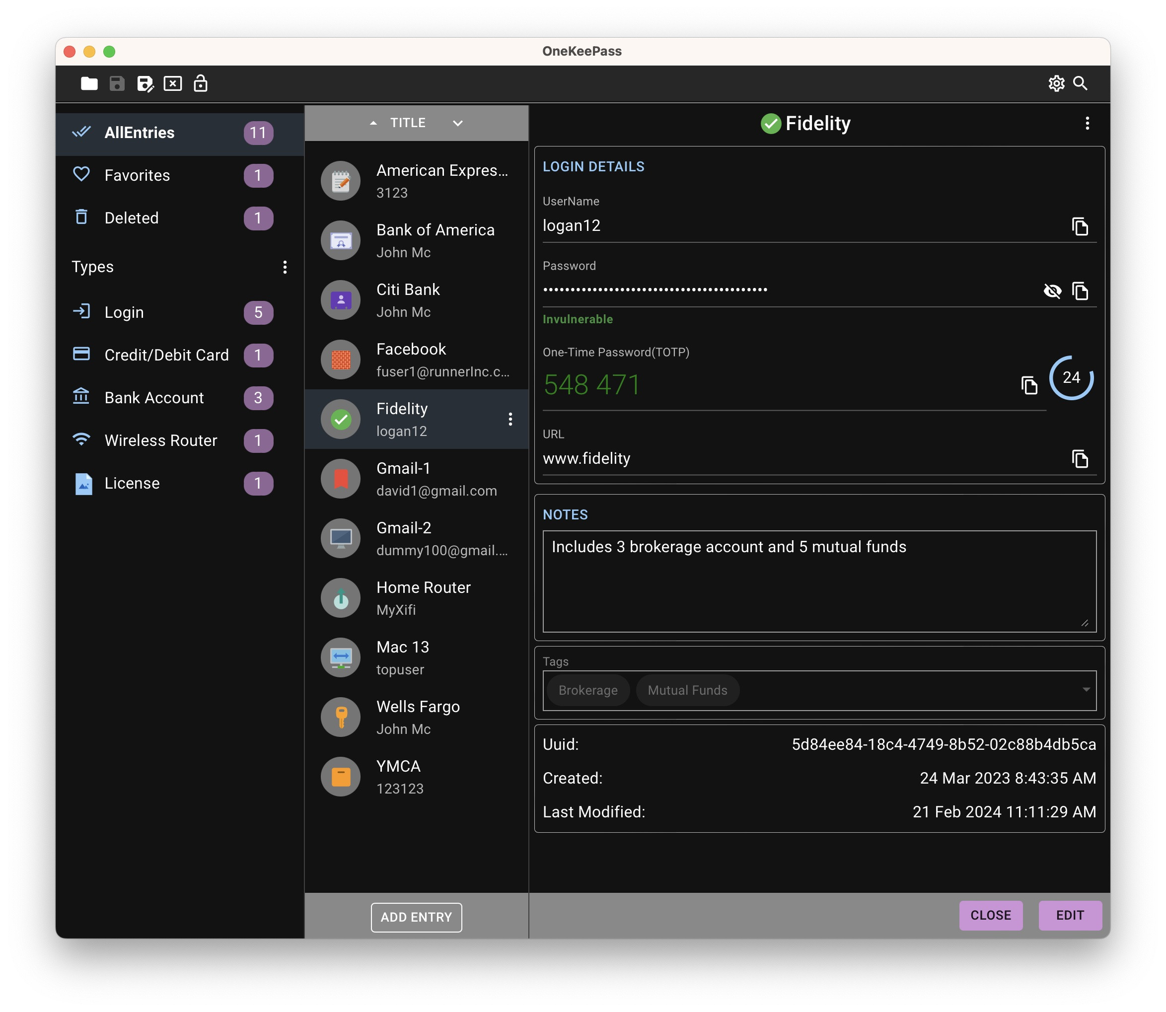 OneKeePass je nástroj určený pro přehlednou a především bezpečnou správu přihlašovacích jmen a hesel s možností přístupu ke KeePass databázi. Všechny důležité a citlivé informace jsou uloženy v jednom šifrovaném souboru, přičemž program využívá algoritmy AES-256 a ChaCha20. Databázové soubory s hesly lze pak ukládat například na cloudové úložiště. Přístup k databázovým souborů je pak možný po zadání hlavního "master" hesla.