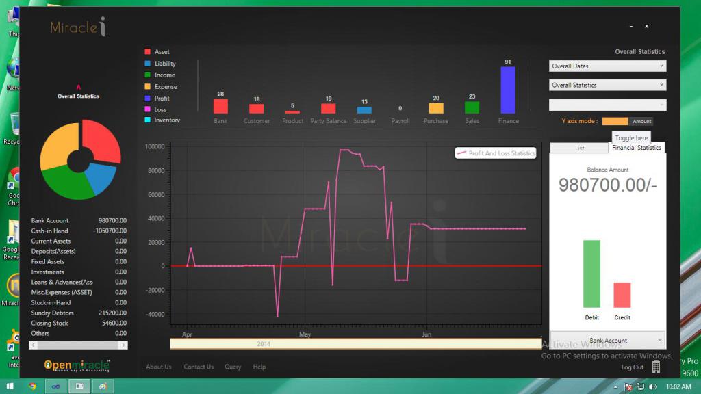 OpenMiracle je kvalitní aplikace pro velmi přehledné vedení a grafické znázornění aktuálního firemního účetnictví a celkového stavu společnosti. Samozřejmostí je možnost exportu i importu dat, tisk a export reportů a přehledných grafů a mnoho dalšího. Program může pomoci například i při účetní uzávěrce. Aplikace také podporuje generování čárových nebo QR kódů.