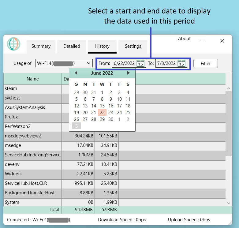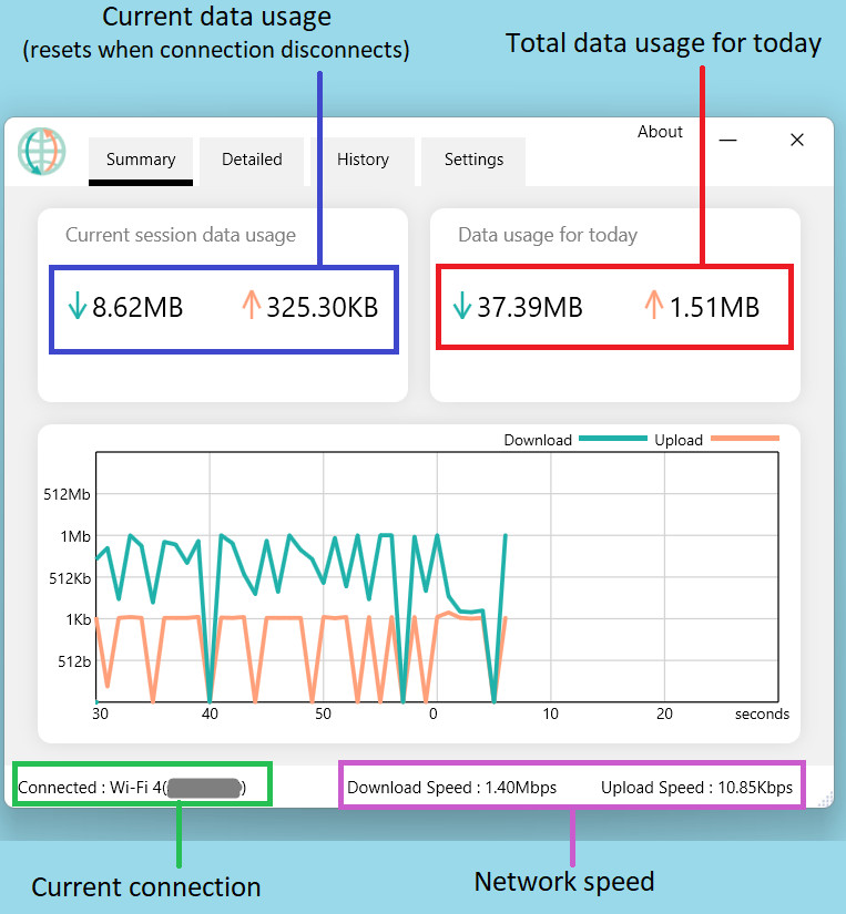 OpenNetMeter je pomůcka pro detailní monitorování a přehledné grafické zobrazení využití sítě. Program zobrazuje například aktuální rychlost připojení, datové využití aktuální relace připojení, celkové objemy přenesených dat nebo přehlednou tabulku se všemi procesy, které aktuálně využívají síťové připojení.