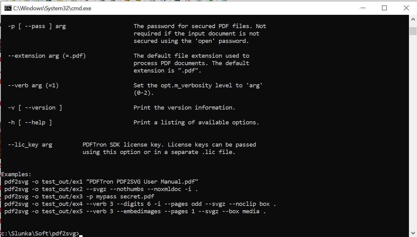 PDF2SVG je nástroj ovládaný pomocí příkazového řádku, který slouží pro hromadný převod PDF dokumentů do souborů typu SVG. Soubory si při konverzi zachovají svoji původní kvalitu i obsah včetně hypertextových odkazů, formátování, fontů písma atd. Vytvořené soubory lze dále upravovat, sdílet, prohlížet, tisknout apod.