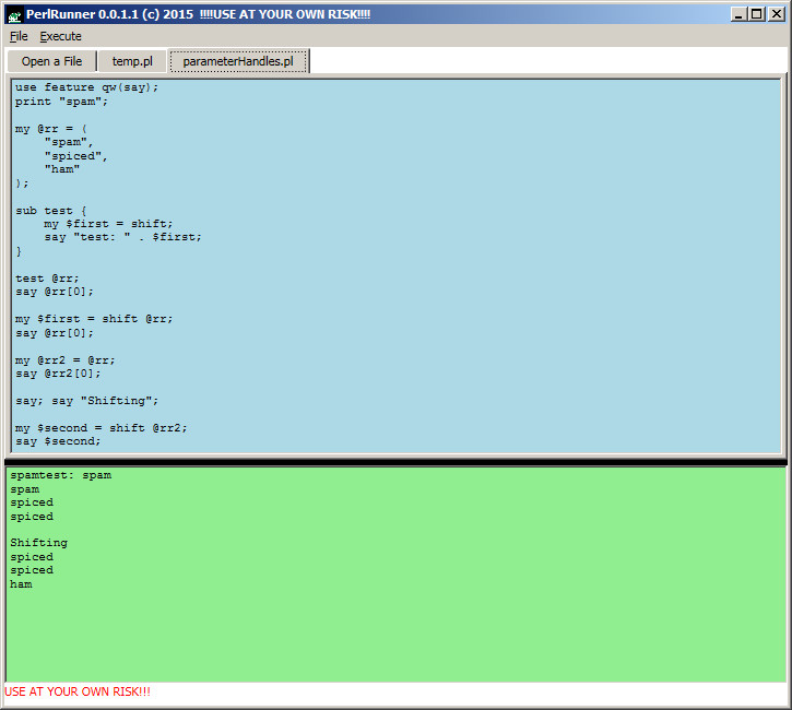 PerlRunner je jednoduchý nástroj určený pro úpravu a spouštění Perl skriptů bez nutnosti instalace náročného vývojového prostředí. Podporováno je otevření více souborů v záložkách, automatické odsazování a převod tabulátorů na mezery.