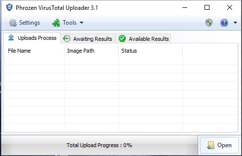 PhrozenSoft VirusTotal Uploader je užitečná pomůcka pro snadnou a především pohodlnou antivirovou kontrolu vybraných souborů pomocí webové služby VirusTotal.com. Soubory lze na server VirusTotal uploadovat také pomocí přetažení souboru na ikonu programu v pravém spodním rohu obrazovky.