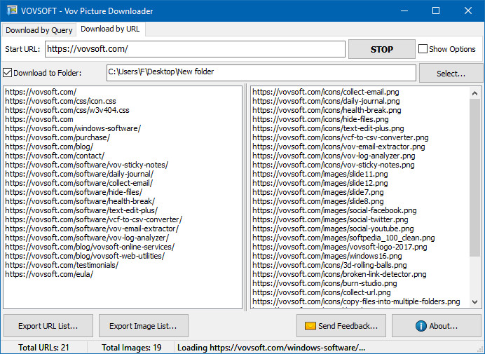 Picture Downloader je aplikace sloužící pro extrakci a hromadné uložení obrázků nebo digitálních fotografií z vybraných webových stránek. Snímky lze vyhledat pomocí klasického vyhledávání nebo je možné zadat přímo požadovanou URL adresu. Podporovány jsou grafické soubory typu JPG, PNG, TIF, WEBP a mnoho dalších.
