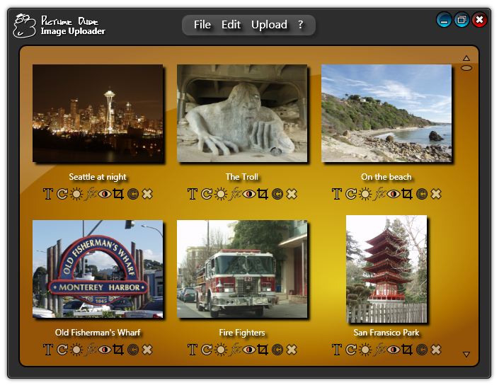 Picture Dude Image Uploader je nástroj určený pro snadnou hromadnou optimalizaci a přípravu digitálních fotografií pro jejich bezproblémový upload na sociální síť Facebook. Program spolupracuje s fotografiemi ve formátu JPG, PNG, BMP a RAW. Uživatel můýe dávkově upravit například jas i kontrast fotografií, odstranit efekt červených očí, ořezat fotografie, přidat efekty či vodoznaky a mnoho dalšího.