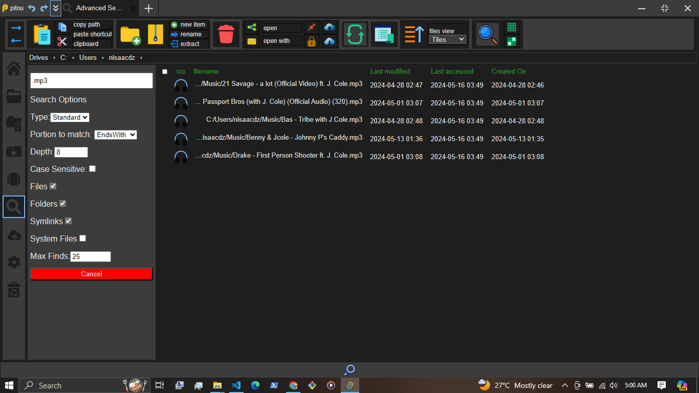 Soubory v rámci složky je možné také prohledávat, filtrovat a řadit na základě různých kritérií či atributů. Program nabízí uživateli také několik možných zobrazení složek a souborů a není jej potřeba instalovat.