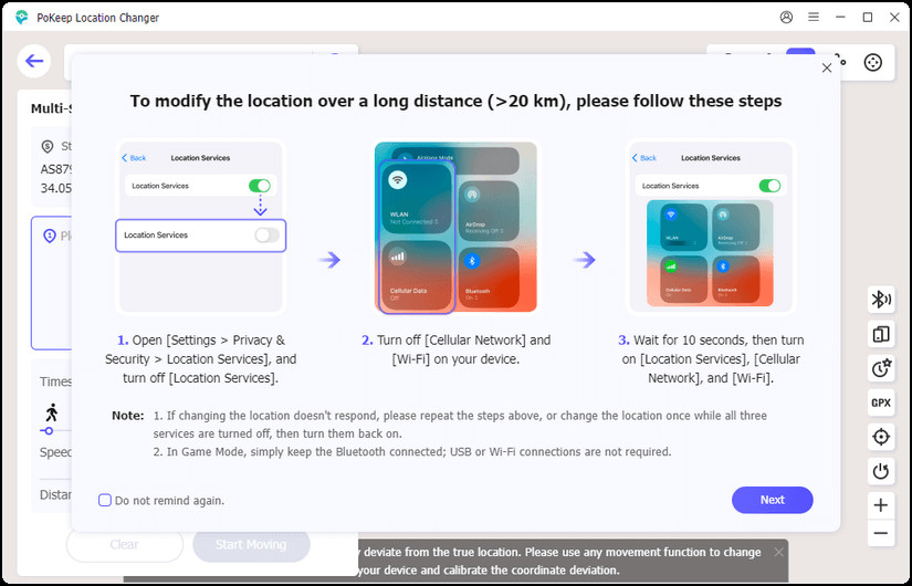 PoKeep Location Changer je aplikace, která dokáže fiktivně změnit GPS, respektive geografickou polohu přenosných zařízení se systémy Android nebo iOS i bez jejich "rootnutí" nebo "jailbreaku".
