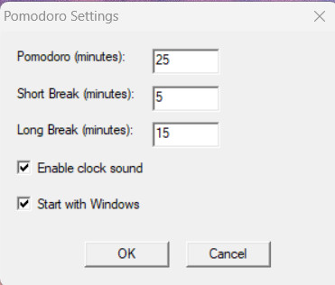 Pomodoro Timer je nenáročný Pomodoro časovač pro rozdělení pracovní doby na delší časový interval pro produktivní práci a kratší pro přestávky. Časovač je spuštěn na pozadí Windows v oznamovací oblasti (system tray) a zobrazuje aktivní ikonu, která zobrazuje aktuální stav časovače. Nechybí ani možnost zvukových upozornění a také možnost úpravy délky časových intervalů (pracovní čas, krátká přestávka, dlouhá přestávka).