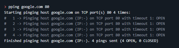 pping je nenáročná pomůcka pro detailní měření odezvy serverů nebo síťových adres pomoci příkazu PING. Program disponuje vlastní konzolí s podporou mnoha různých parametrů, které jsou uvedeny na webových stránkách programu.