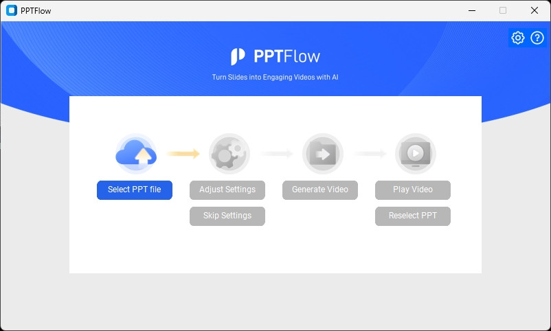 PPTFlow je aplikace sloužící k převodu PowerPoint prezentací (PPT) do klasických video souborů a to včetně AI hlasového doprovodu a automaticky vygenerovaných titulků. Výstupní video je ve formátu MP4.