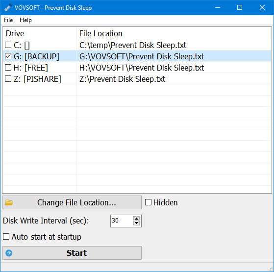 Prevent Disk Sleep je jednoduchá pomůcka, která dokáže zabránit pevnému disku přejít do režimu spánku respektive nečinnosti. Program v pravidelných časových intervalech provádí jednoduchou operaci zápisu na disk, která tak udržuje pevný disk v činnosti.
