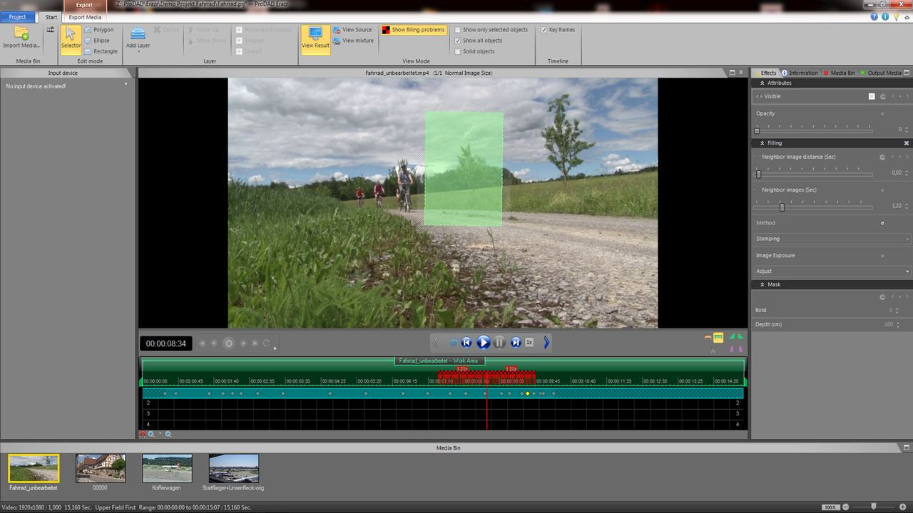 ProDAD Erazr je aplikace, jejíž pomocí lze snadno odstranit nechtěné objekty z videí. Součástí programu je samozřejmě i časová osa, jejíž pomocí je možný i střih videa. Objekty lze označit manuálně nebo je sledovat automaticky. Integrována je možnost přímého uploadu videa na YouTube a podporováno je rozlišení až 8K.