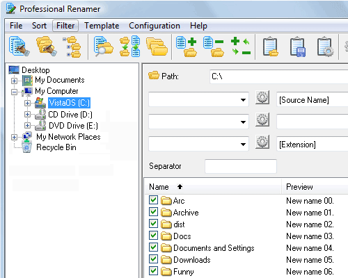 Professional Renamer je kvalitní a především přehledný nástroj pro hromadné přejmenování velkého množství souborů Uživatel si pouze nastaví vlastní podmínky a filtry pro přejmenování, ze kterých lze vytvořit i vlastní šablony pro pozdější použití. Před samotný přejmenování existuje možnost zobrazení náhledů.