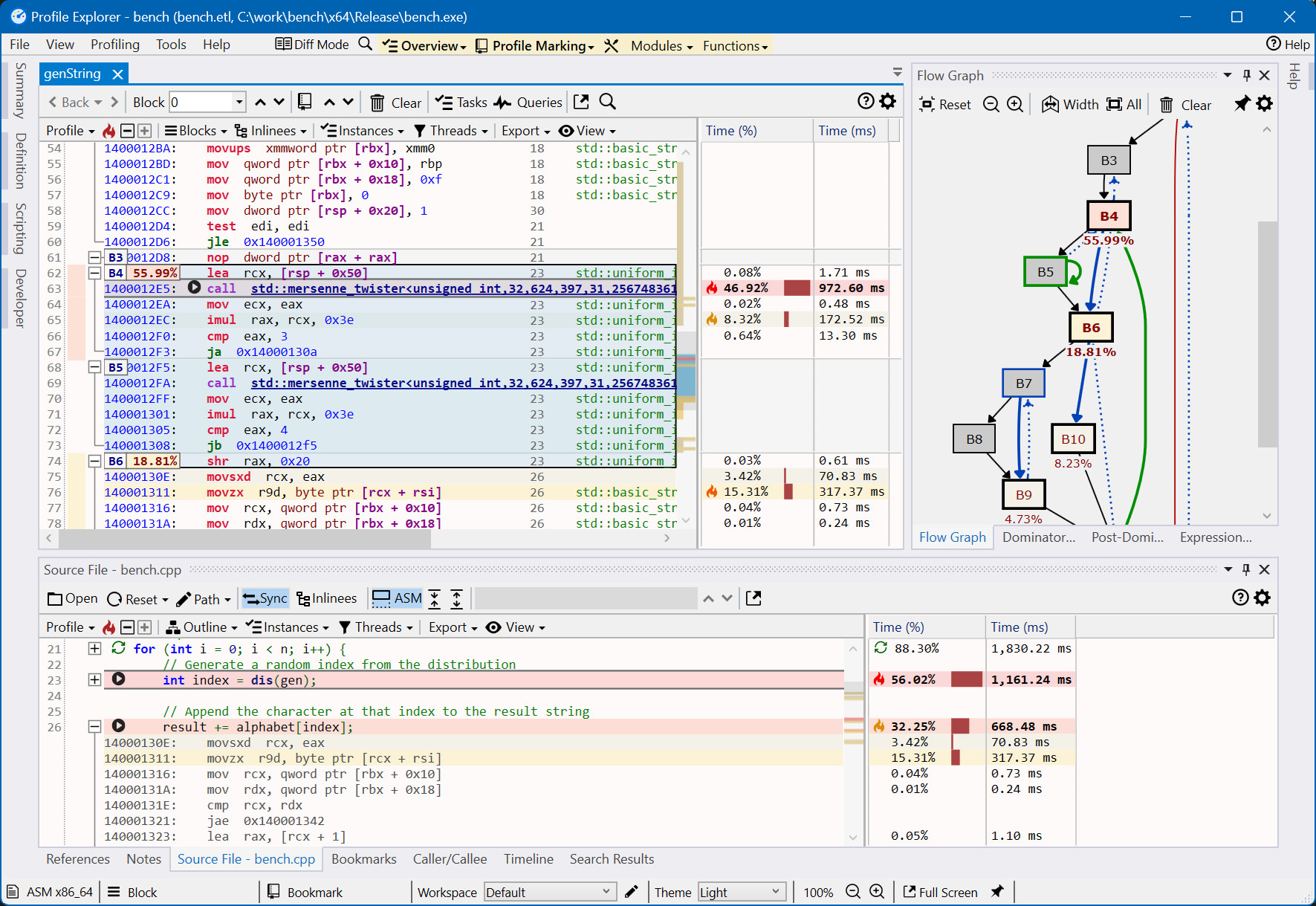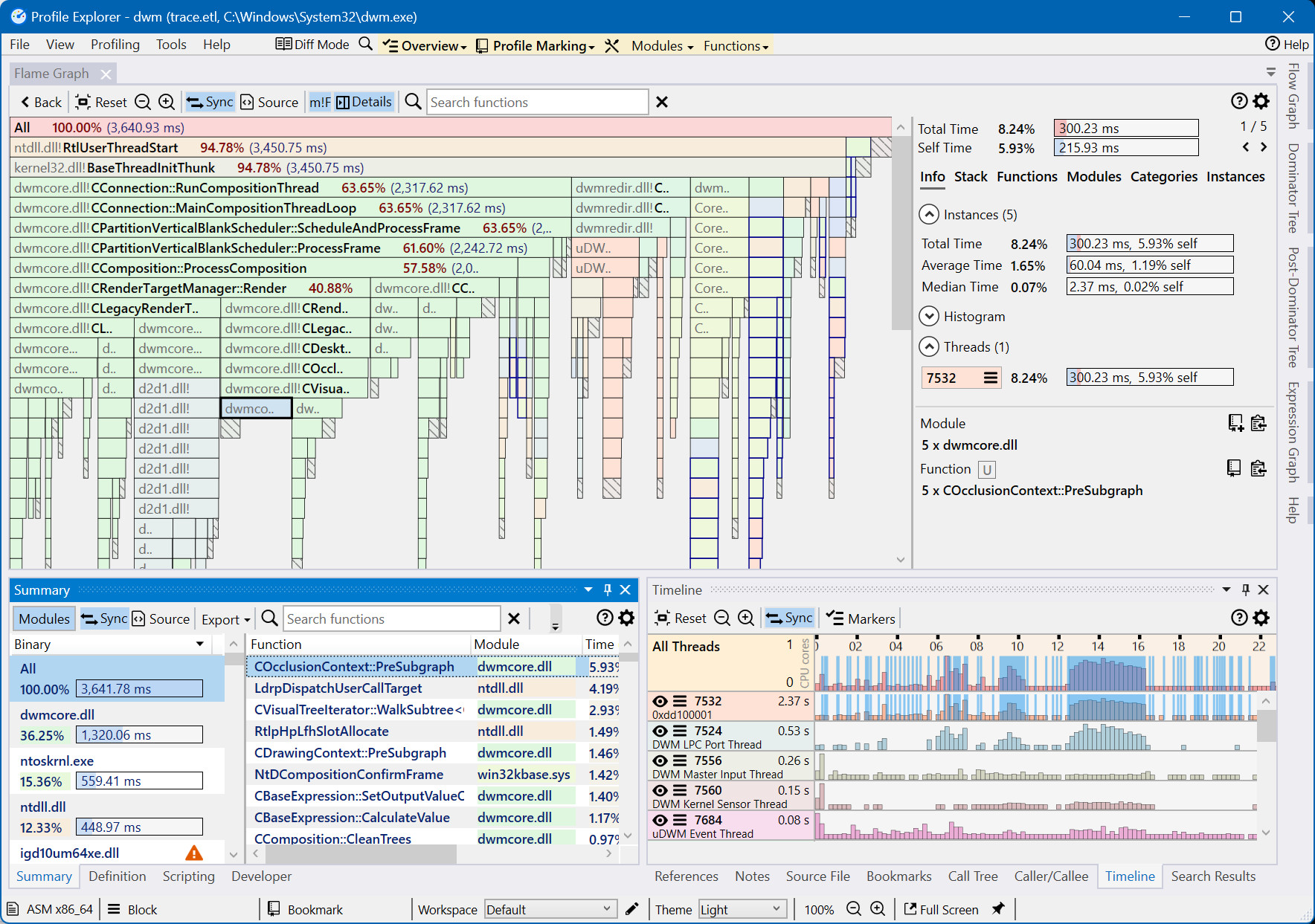 Profile Explorer identifikuje a zobrazuje funkce, které nejvíce CPU. Program také graficky znázorňuje volání funkcí a jejich podíly na celkovém zatížení CPU. Poskytuje také hierarchické zobrazení volání funkcí či zobrazení assembler kódu a zdrojového kódu pro detailní analýzu.