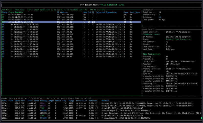 PTP Trace je nástroj ovládaný pomocí terminálu, který slouží k monitorování a analýze sítí typu PTPv2 (Precision Time Protocol). Administrátoři, tak mohou podrobně sledovat t synchronizaci času přes PTP protokol. Díky programu lze také zjistit, kdo je síti primární časový zdroj. Zobrazuje rovněž různé statistiky, hierarchii vysílač-příjemce a kvalitu časových zpráv.