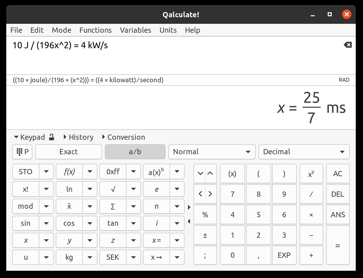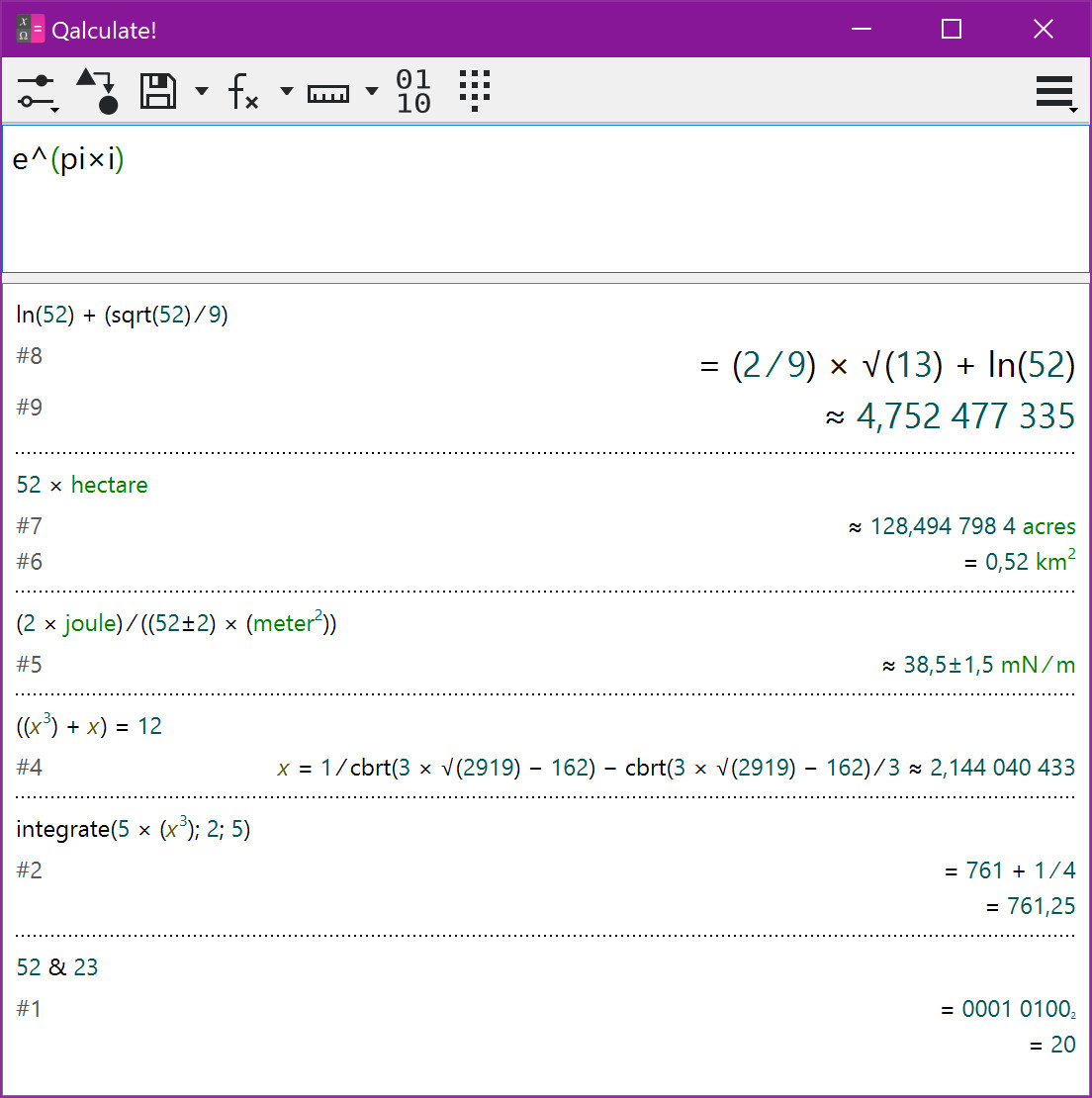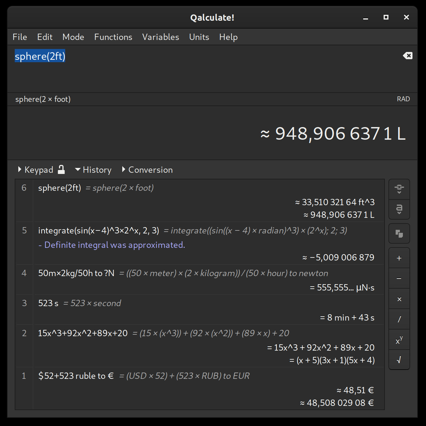 Qalculate! je pokročilý kalkulátor umožňující výpočet kompletních matematických úloha a výrazů. Možný je také převod mnoha různých fyzikálních či matematických jednotek. Provádět lze také převody měn, procentuální výpočty, statistické výpočty a mnoho dalšího. Nechybí ani obsáhlá databáze různých matematických konstant a možnost vykreslení grafů funkcí.