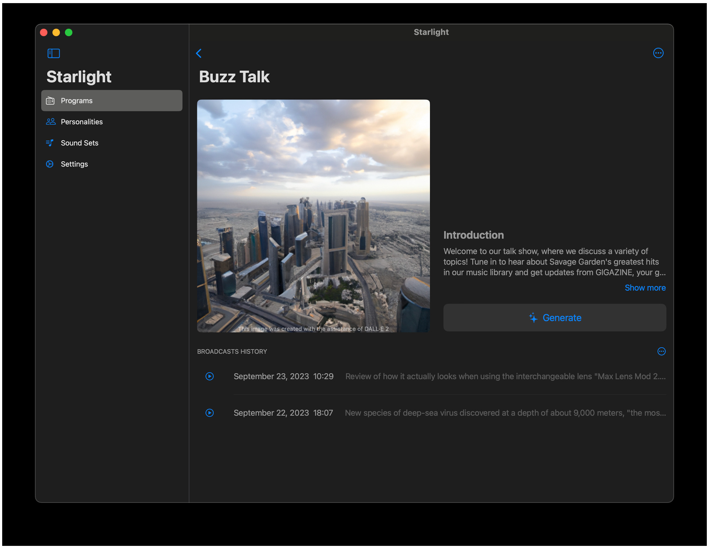 Radio Starlight for Mac je "generativní" softwarové rádio pro maximalizaci vaší produktivity poslechem audio obsahu připraveného přesně na míru.